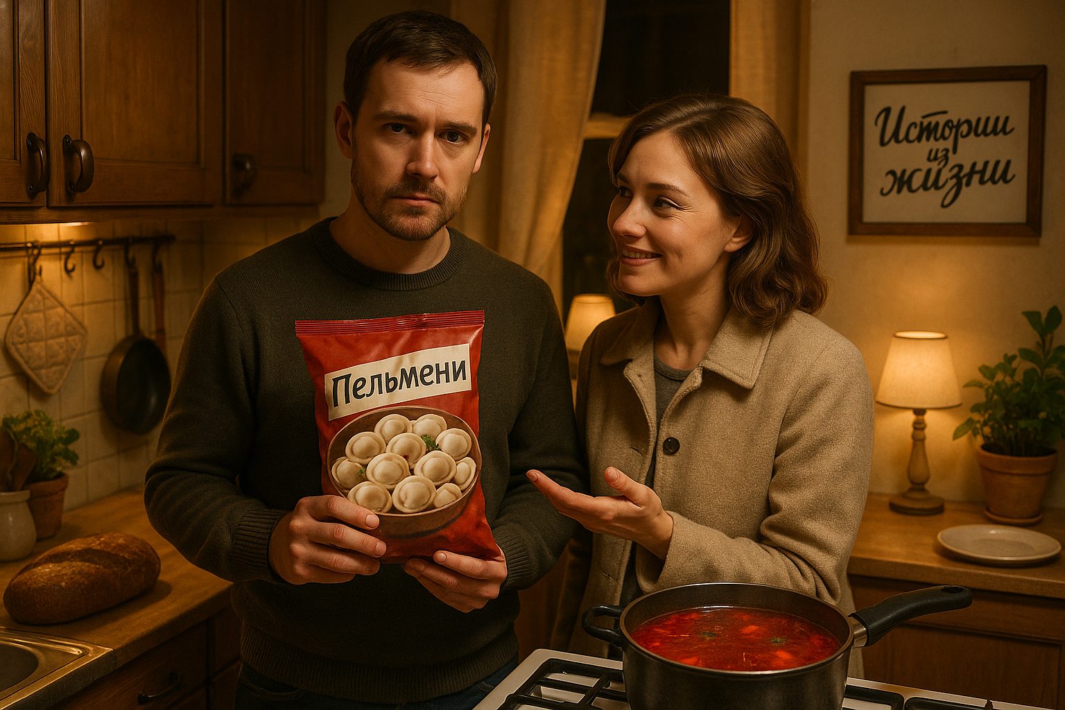 Рядом кто-то нервно шуршал пакетами, ломая хрупкую тишину между витринами. Сергей обернулся и встретился со взглядом девушки в светлом плаще. Она смущённо улыбнулась и, качнув головой на пельмени в его руке, вдруг спросила:
