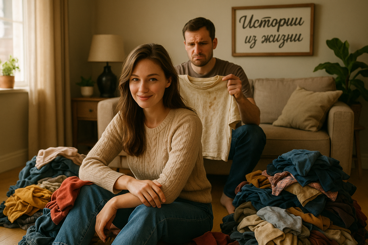Я уже собиралась сложить последнюю стопку одежды на верхнюю полку, когда заметила, что одной старой вещи не хватает. Муж тут же оглянулся, словно чувствуя мой взгляд. В руках он сжимал ту самую футболку с кофейным пятном. Скомканная и немного рваная, она вдруг казалась такой родной и в то же время нелепой.