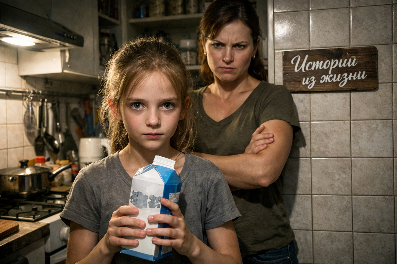 — Мам, я… куплю это молоко завтра… Обещаю, — Настя робко шагнула к столу, на котором одиноко стоял пустой пакет.