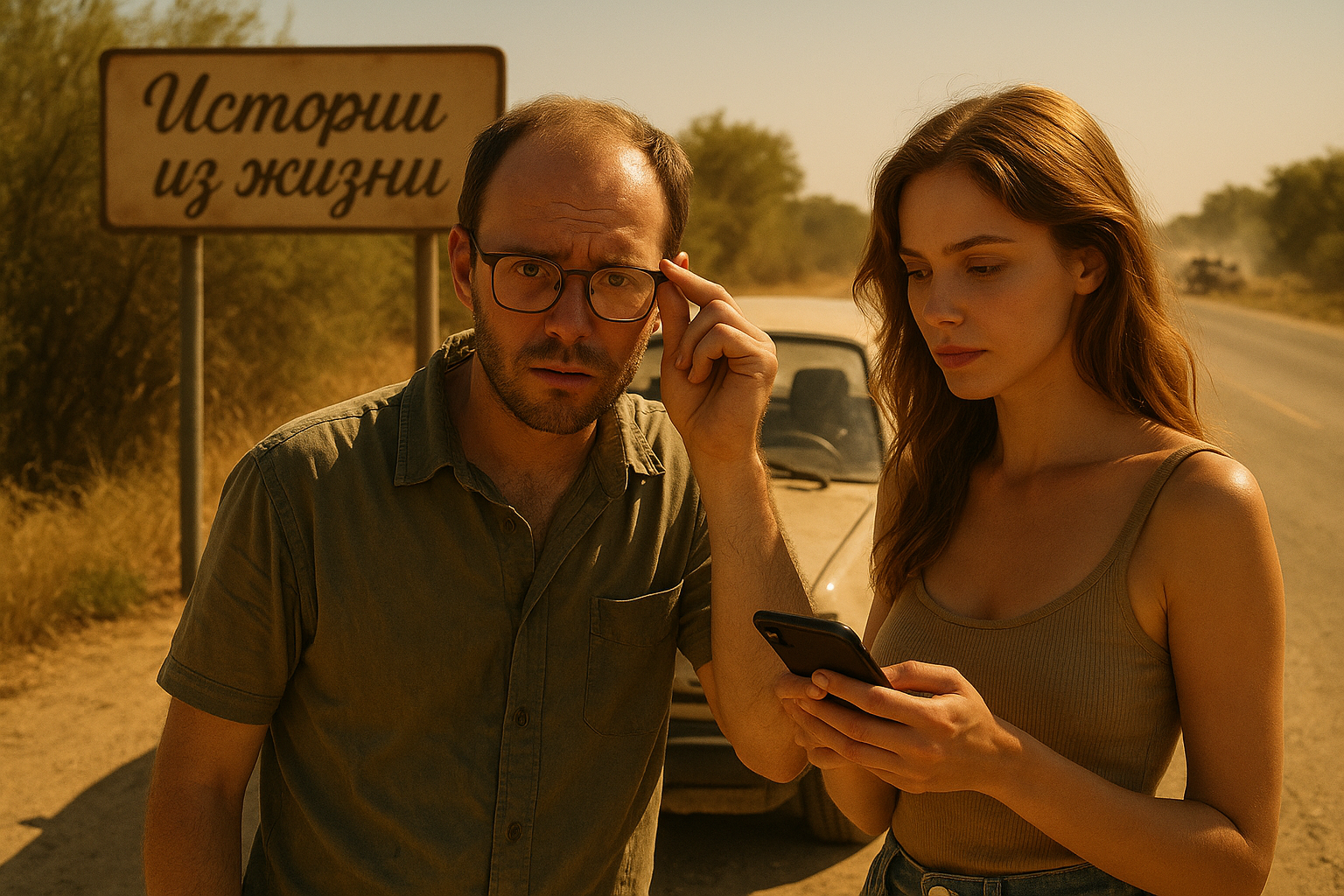 Зной давил с такой силой, что казалось, сам воздух плавился над раскалённым асфальтом. Старенькая «Шкода» Димы застыла у обочины, рядом угрюмо пристроилась чёрная «Мазда» коллеги — всё равно сигнал ловился еле-еле. Никто не хотел выходить на солнцепёк, но внутренний голос уже кричал: Пора решать рабочие вопросы, мы не можем так надолго застрять!