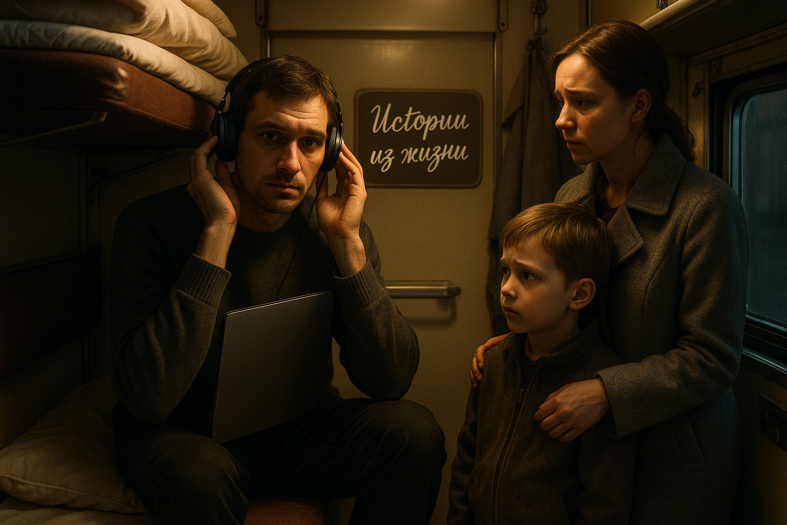 Алексей выдохнул, лёг головой к стенке. Наушники уже не хотелось надевать: пропал смысл спасаться от чужих голосов. Он смотрел в окно на темнеющие осенние поля за стеклом вагона и думал о том, как округло и мягко течёт вся эта поездная жизнь. Когда всё наконец уладилось, оставалась только лёгкая покачка на стыках рельс и чувство, что впереди — Москва и новые дела, а в душе — спокойствие, как будто там появилась свободная полка для собственных мыслей.